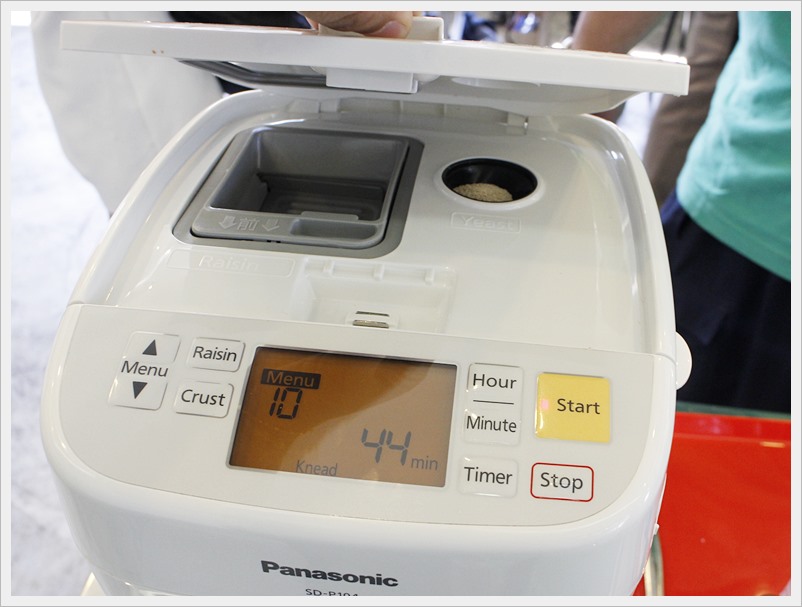 เริ่มต้นน้องแก้วก็ทำการแนะนำตัวเครื่องทำขนมปังของพานาโซนิคก่อนค่ะว่ามีกี่เมนู และแต่ละเมนูทำอะไรได้บ้าง ซึ่งคร่าว ๆ ก็คือ เครื่องทำขนมปังของพานาโซนิคตัวนี้มีอยู่ด้วยกัน 13 เมนูนะคะ มีทั้งเมนูที่ทำแล้วได้ขนมปังพร้อมทานออกมาเลย ทั้งขนมปังด่วน ขนมปังโฮลวีท ขนมปังขาว ขนมปังข้าว และก็มีทั้งเมนูที่ทำให้ออกมาเป็นโดว์ขนมปังเฉยๆ เพื่อให้เราเอามาขึ้นรูปแล้วเอาไปเข้าอบในเครื่อง หรือที่เตาอบอีกที และยังมีเมนูสำหรับทำเค้ก (จากเครื่องทำขนมปังนี่แหละค่ะ) เมนูที่นวดแป้งเกี๊ยว นวดแป้งซาลาเปาได้ เรียกว่าทำได้หลากหลายมากมายเลยค่ะ (ไว้พิมมารีวิวตัวเครื่องแบบละเอียดให้ดูอีกที หลังจากกลับจากเชียงใหม่นะคะ) ที่สำคัญคือ ตั้งเวลาล่วงหน้าได้ด้วย (ภายใน 13 ชม.) แถมเป็นการตั้งเวลาที่ต้องการให้เครื่องทำขนมปังเสร็จ ประมาณว่าเราอยากกินขนมปังตอนกี่โมง ก็กดปุ่มตั้งเวลานั้นไว้ แล้วเครื่องจะคำนวณให้เองว่าเครื่องจะต้องเริ่มทำขนมปังตอนไหนเพื่อให้เสร็จตอนที่เราอยากกิน เรียกว่าสะดวกมากๆ เลยอ่ะค่ะ