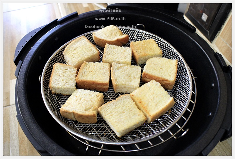 - ขนมปังที่มีความหนาประมาณ 1 นิ้ว ปริมาณมากน้อย ตามชอบ