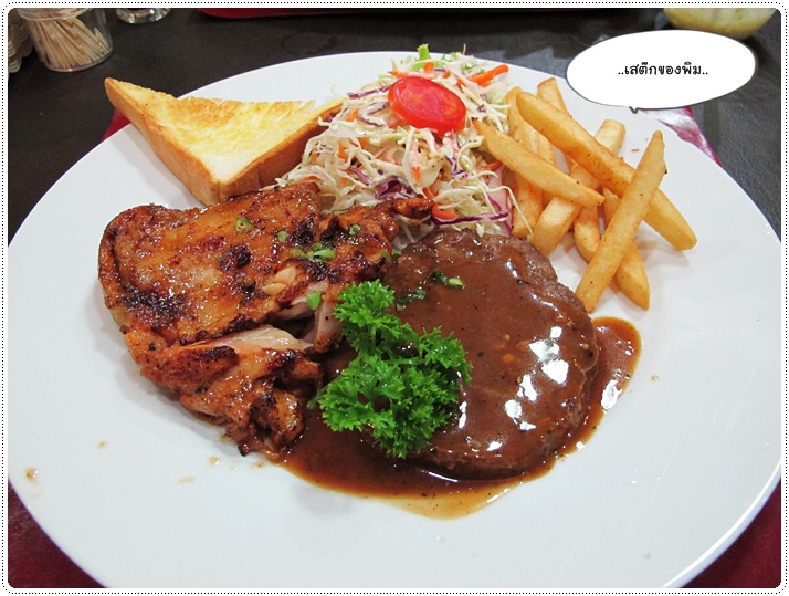 เพิ่มเติม :: เสต๊กร้านนี้ชิ้นใหญ่ก็จริง แต่ไม่หนามาก เพราะงั้นเนื้อเสต๊กจะไม่ค่อยชุ่มฉ่ำแบบตาม รร. ดัง นะคะ แต่ความอร่อย รสชาติ พิมว่าดีกว่าของ Sizzlers ค่ะ (แต่ถ้าเป็นสลัดนี่ พิมเทใจให้ Sizzlers เลยค่ะ)