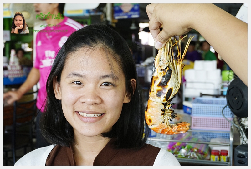 พูดถึงกุ้งเผาแล้ว พิมเชื่อว่าหลายคนถ้านึกอยากจะกินกุ้งเผา ก็มักจะนึกถึงกุ้งเผาตามร้านต่าง ๆ ในจังหวัดอยุธยานะคะ ซึ่งจะว่าไปพิมก็ไปกินกุ้งเผาตามร้านดัง ๆ ที่อยุธยามาหลายร้าน ยังไม่เจอถูกใจสักร้านเลยค่ะ เพราะบางร้านกุ้งเผาอร่อย แต่อาหารอื่นไม่ไหวจะเคลียร์ แถมยังมาเสริฟช้ามาก >_< ส่วนบางร้าน..อาหารอื่นพอไหว แต่กุ้งเผาย่างออกมาได้แข็งมากก็มีนะคะ (หรืออาจจะเพราะตอนพิมไป จังหวะไม่ดีก็ไม่รู้ T__T) แล้วที่สำคัญคือพิมไม่ชอบกุ้งเผาที่ถูกย่างแบบผ่าครึ่ง เพราะความชุ่มชื้นในเนื้อกุ้งมันจะหายไปบางส่วน ซึ่งร้านที่อยุธยาส่วนใหญ่จะเป็นแบบนั้น เพราะเวลาเสริฟมันดูสวย เหมาะแก่การถ่ายรูปไปลง social อ่ะค่ะ เพราะงั้นน้องหวานก็เลยพาพวกเรามาที่ร้านนี้ เพราะน้องหวานบอกว่านอกจากที่นี่จะเปิดมานานมากแล้ว อาหารของที่นี่ยังรสชาติดีแบบไทยบ้านๆ โดยเฉพาะอาหารจากปลาแม่น้ำนะคะ ส่วนกุ้งเผาก็เป็นแบบย่างทั้งตัวอย่างที่พิมชอบ ที่สำคัญยิ่งกว่าคือ ราคากุ้งและราคาอาหารของที่นี่ เมื่อเทียบกับร้านดังหลายร้าน ราคาสบายกระเป๋ากว่าอย่างเห็นได้ชัดเลยอ่ะค่ะ