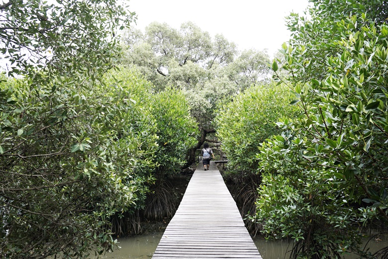 โดยธรรมชาติรอบข้างระหว่างทางเดิน ก็จะมีต้นไม้นานาพันธุ์ ทั้งต้นเล็กที่เพิ่งขึ้น ทั้งต้นใหญ่อายุนับร้อย ๆ ปีบ้างเน๊าะคะ ซึ่งต้นไม้ส่วนใหญ่ก็จะเป็นต้นไม้ที่นิยมขึ้นในป่าชายเลน อย่างต้นโกงกาง ต้นแสมดำ ต้นแสมขาว ต้นโปรงขาว ต้นประสักดอกแดง ต้นโพทะเล อะไรประมาณนี้อ่ะค่ะ แล้วด้วยความที่ที่นี่มีต้นไม้เยอะมาก อากาศในนี้ก็เลยเย็นสบาย เดินเล่นชิว ๆ เป็นครึ่งค่อนชั่วโมง เหงื่อยังไม่ออกสักหยดเลยนะคะ เพราะนั้นใครอยากหาที่พักผ่อน อยากเดินเล่นท่ามกลางธรรมชาติ ..... ลองมาที่นี่ดู รับรองไม่ผิดหวังค่ะ ^__^