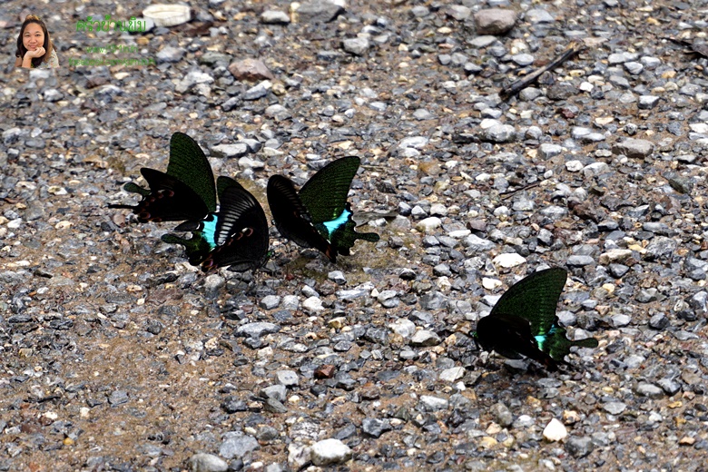 และเมื่อขับรถมาถึงลานจอดรถตรงจุดเริ่มต้นเดินไปน้ำตกตะคร้อ บริเวณนั้นก็จะมีผีเสื้ออีกกลุ่มใหญ่ และเป็นคนละสายพันธุ์กับกลุ่มตรงหน้าอุทยานด้วยอ่ะค่ะ