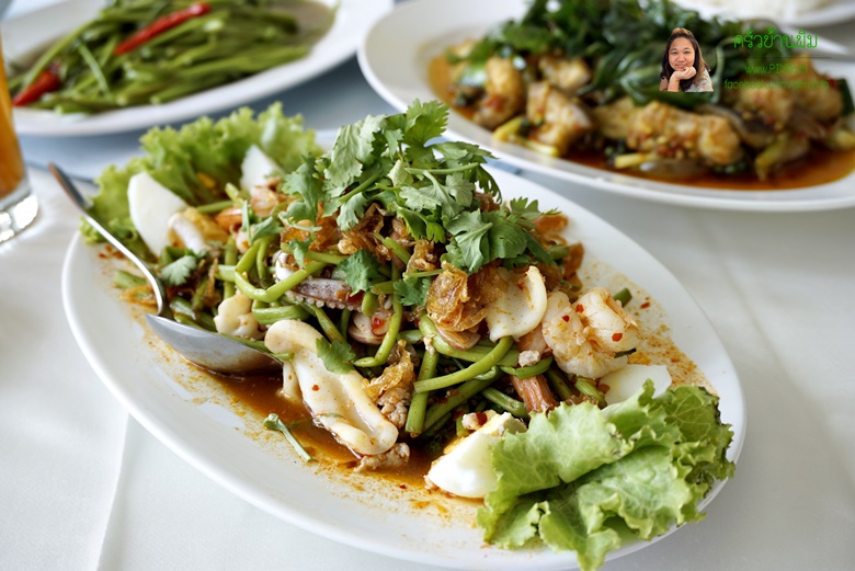 ในเรื่องของเมนู นอกจากเมนูผักกระเฉดแล้วเนี่ย ที่นี่ก็ยังมีเมนูเด็ด ๆ อีกมากมายเลยนะคะ ซึ่งเท่าที่พิมอ่านรีวิวมาจากใน google (งานนี้ยกความดีให้ google ^_^) ก็มีคนบอกว่า ถ้ามาที่นี่แล้วอยากทานอย่างอื่นที่ไม่ใช่กระเฉดชะลูดน้ำ ก็ให้ลองสั่งพวกเมนูปลาแม่น้ำ อย่างปลาคัง ปลาน้ำเงิน ปลาเนื้ออ่อนมาทานดู เพราะที่นี่...แม่ครัว เค้าทำเมนูปลาได้เด็ดมากเลยอ่ะค่ะ