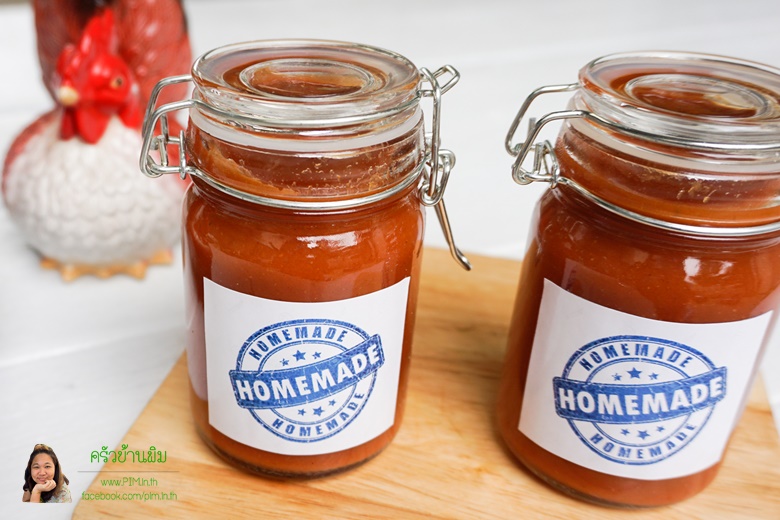และพอส่วนผสมในหม้อเดือด ก็หรี่ไฟลงเป็นไฟอ่อน แล้วเคี่ยวไปเรื่อยๆ หมั่นนเป็นระยะ ๆ จนกระทั่งส่วนผสมลดลงเหลือประมาณครึ่งนึง หรือตามความข้นที่ต้องการนะคะ ซึ่งเมื่อถึงตรงนี้แล้วให้เพื่อน ๆ ตักส่วนผสมในหม้อขึ้นมาชิมสักหน่อยค่ะ ว่ารสชาติถูกใจไหม ถ้าขาดรสอะไรไป เช่น รสหวานก็เติมน้ำตาล รสเค็มก็เติมเกลือ และรสเปรี้ยวก็เติมน้ำส้มนะคะ แล้วคนให้เข้ากัน จนส่วนผสมเดือดอีกทีก็ปิดไฟเตาได้เลยอ่ะค่ะ