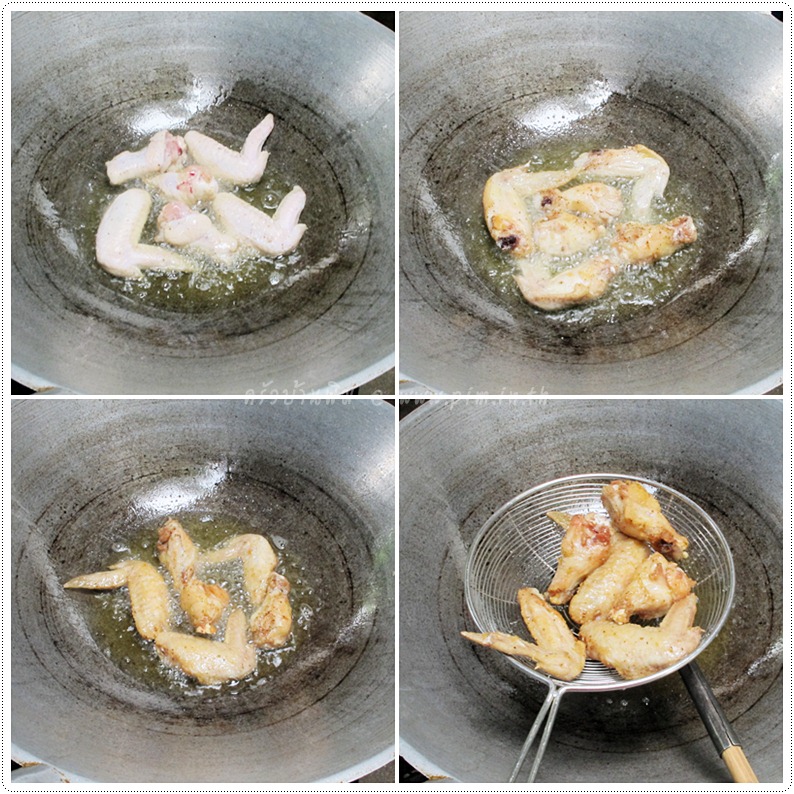 เพิ่มเติม : หากใครไม่ชอบปีกทั้งปีก จะเลือกใช้เฉพาะปีกส่วนบนที่พิมมักจะเรียกว่าน่องน้อย หรือใช้ส่วนปีกกลางอย่างเดียวก็ได้ หรือจะเปลี่ยนจากไก่เป็นกระดูกหมู เช่น กระดูกอ่อน หรือกระดูกแก้วแทนก็ไม่ผิดกติกาแต่อย่างใดค่ะ