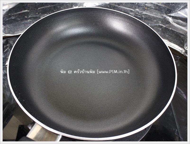 คนเข้ากันดีแล้ว ก็ตั้งกระทะเทฟล่อนบนเตาไฟ เปิดไฟอ่อนๆ นะคะ ทาที่ในกระทะด้วยน้ำมันพืชบางๆ (พิมใช้น้ำมันดอกทานตะวัน) โดยวิธีการทาของพิม พิมจะใช้แปรงซิลิโคน จุ่มในน้ำมันเล็กน้อย แล้วทาให้ทั่วกระทะแบบในภาพด้านล่างนะคะ