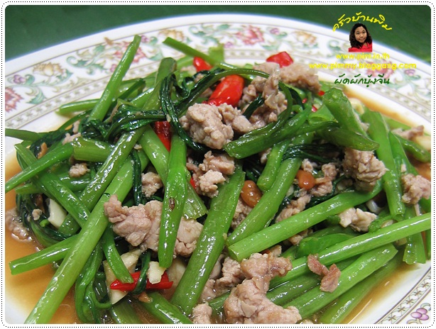 ว่าแต่มาดูผัดผักบุ้งจีนแบบธรรมดา ๆ ของบ้านพิมกันดีกว่าค่ะ