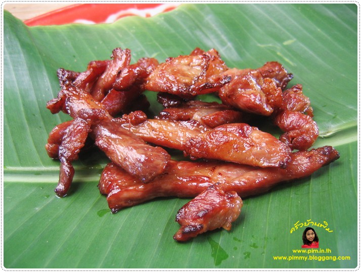 ป.ล. ถ้าไม่ต้องการให้เนื้อหมูติดตะแกรง ก็เอาน้ำมันพืชทา ๆ ที่ตะแกรงสักหน่อยก่อนเรียงหมูลงไปนะคะ แต่โดยปกติสูตรนี้ไม่ต้องทาน้ำมันพืชบนตะแกรงก็ได้ค่ะ เพราะว่าในน้ำหมักหมูมีส่วนผสมของน้ำมันพืชอยู่บ้างแล้ว