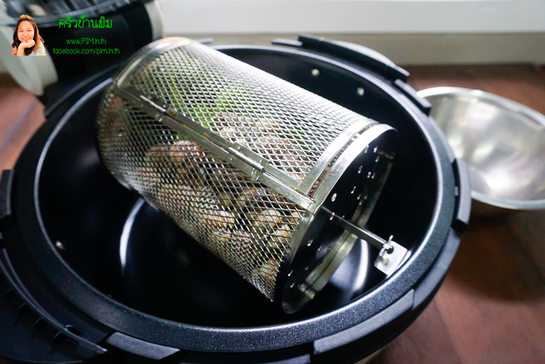 พอครบเวลา เราก็เปิดฝาหม้อ แล้วก็เปิดตัวล๊อคตะแกรงอบหอย