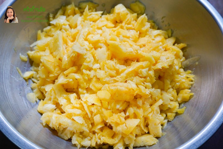 สำหรับเวลาที่ใช้ในการกวนสับปะรดแต่ละครั้งเนี่ย จะไม่เป๊ะตามนี้ทุกครั้ง ขึ้นกับความแรงของไฟ และขึ้นอยู่กับปริมาณน้ำที่ออกมาจากสับปะรดด้วยอ่ะค่ะ