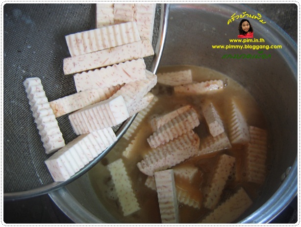 เมื่อได้รสที่ชอบแล้ว ก็ใส่เผือกลงไป