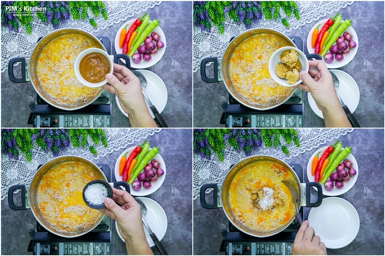 พอครบเวลาก็ปรุงรสด้วยน้ำมะขามเปียก น้ำตาลมะพร้าว (น้ำตาลปี๊บ) และเกลือค่ะ